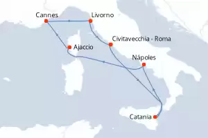Italia, Francia Itinerario: Civitavecchia - Roma , Catania , Nápoles , Ajaccio , Cannes , Livorno , Civitavecchia - Roma Comidas incluidas Scarlet Lady 10 días Camarote estándar Civitavecchia - Roma 22/08/2026 desde US$1562 Comidas incluidas Ver las ofertas