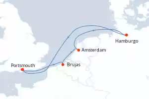 Alemania, Reino Unido, Paises Bajos, Bélgica Itinerario: Portsmouth , Brujas , Amsterdam , Hamburgo , Hamburgo , Portsmouth Comidas incluidas Valiant Lady 8 días Camarote exterior Portsmouth 20/08/2026 desde US$1742 Comidas incluidas Ver las ofertas