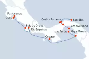 Secrets d'Amérique centrale Itinerario: Puntarenas , Curú , Puntarenas , Baie de Drake , Rio Esquinas , Cebaco , Playa Muerto , Islas Perlas , Pacheca Island , Crossing Panama canal , San Blas , Fuerte San Lorenzo , Colón - Panama Comidas incluidas Le Champlain 11 días Camarote balcón Puntarenas 15/03/2026 desde US$11599 EL PRECIO NO INCLUYE LA PERCEPCIÓN DEL 30% DE AFIP - RG 5463 TARIFA NO REEMBOLSABLE Comidas incluidas Ver las ofertas