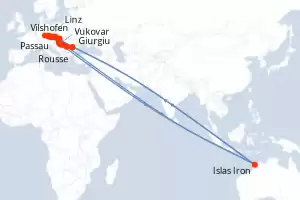 Eslovaquia, Hungría, Alemania, Croacia, Austria, Serbia, Australia, Bulgaria, Rumania Itinerario: Giurgiu , Rousse , Vidin , Las Puertas de Hierro , Belgrado , ilok , Vukovar , Mohacs , Budapest , Budapest , Bratislava , Viena , Krems , Weissenkirchen , Grein , Spitz , Linz , Passau , Vilshofen , Vilshofen Comidas incluidas AmaVerde 15 días Camarote exterior Giurgiu 06/09/2027 desde US$10661 EL PRECIO NO INCLUYE LA PERCEPCIÓN DEL 30% DE AFIP - RG 5463 TARIFA NO REEMBOLSABLE Comidas incluidas Otras fechas : 22 mar. 27 19 abr. 27 17 mayo 27 Otras fechas Ver las ofertas