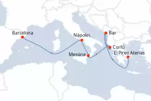 Italia, Grecia, Montenegro, España Itinerario: El Pireo Atenas , Bar , Corfú , Messine , Nápoles , Barcelona Comidas incluidas Sun Princess 8 días Camarote estándar El Pireo Atenas 24/10/2026 desde US$1084 EL PRECIO NO INCLUYE LA PERCEPCIÓN DEL 30% DE AFIP - RG 5463 TARIFA NO REEMBOLSABLE Comidas incluidas Otras fechas : 3 oct. 26 Ver las ofertas