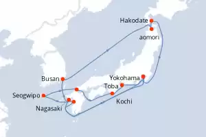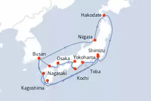 Japón, Corea del Sur Itinerario: Yokohama , Hakodate , Niigita , Busan , Nagasaki , Kagoshima , Yokohama , Toba , Osaka , Kochi , Hiroshima , Kanmon Straits , Busan , Nagasaki , Shimizu , Yokohama Comidas incluidas Diamond Princess 20 días Camarote estándar Yokohama 02/07/2027 desde US$2883 EL PRECIO NO INCLUYE LA PERCEPCIÓN DEL 30% DE AFIP - RG 5463 TARIFA NO REEMBOLSABLE Comidas incluidas Ver las ofertas