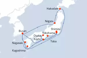 Japón, Corea del Sur Itinerario: Yokohama , Hakodate , Niigita , Busan , Nagasaki , Kagoshima , Kochi , Shimizu , Yokohama , Toba , Osaka , Kochi , Busan , Nagasaki , Shimizu , Yokohama Comidas incluidas Diamond Princess 20 días Camarote estándar Yokohama 05/09/2027 desde US$2814 EL PRECIO NO INCLUYE LA PERCEPCIÓN DEL 30% DE AFIP - RG 5463 TARIFA NO REEMBOLSABLE Comidas incluidas Ver las ofertas