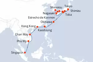 Japan & Southeast Asia Grand Adventure Itinerario: Tokyo , Toba , Shimotsu , , Nagasaki , Busan , Kanmon Straits , Hiroshima , Kochi , Shimizu , Tokyo , Kochi , Okinawa , Kaoshiung , Hong Kong , Chan May , Phu My , Singapur Comidas incluidas Sapphire princess 25 días Camarote estándar Tokyo 04/09/2027 desde US$3054 EL PRECIO NO INCLUYE LA PERCEPCIÓN DEL 30% DE AFIP - RG 5463 TARIFA NO REEMBOLSABLE Comidas incluidas Ver las ofertas