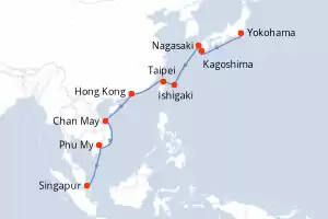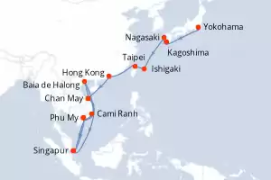 Vietnam, Singapur, China, Taiwán, Japón Itinerario: Yokohama , Kagoshima , Nagasaki , Ishigaki , Taipei , Hong Kong , Chan May , Phu My , Singapur , Phu My , Cami Ranh , Baia de Halong , Baia de Halong , Baia de Halong , Chan May , Singapur Comidas incluidas Diamond Princess 25 días Camarote estándar Yokohama 25/11/2026 desde US$3703 EL PRECIO NO INCLUYE LA PERCEPCIÓN DEL 30% DE AFIP - RG 5463 TARIFA NO REEMBOLSABLE Comidas incluidas Ver las ofertas