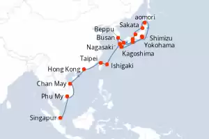 Navegando por Japón y el sudeste asiátic Itinerario: Yokohama , aomori , Sakata , Kanazawa , Sakai-Minato , Busan , Nagasaki , Kagoshima , Beppu , Kochi , Osaka , Shimizu , Yokohama , Kagoshima , Nagasaki , Ishigaki , Taipei , Hong Kong , Chan May , Phu My , Singapur Comidas incluidas Diamond Princess 29 días Camarote estándar Yokohama 11/11/2026 desde US$4543 EL PRECIO NO INCLUYE LA PERCEPCIÓN DEL 30% DE AFIP - RG 5463 TARIFA NO REEMBOLSABLE Comidas incluidas Ver las ofertas