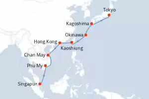Asia Legendaria Itinerario: Tokyo , Kagoshima , Okinawa , Kaoshiung , Hong Kong , Chan May , Phu My , Singapur , Kuala Lumpur , Penang , Langkawi , Phuket , Phu My , Sihanoukville , Laem Chabang , Laem Chabang , Ko Samui , Singapur Comidas incluidas Sapphire princess 29 días Camarote estándar Tokyo 12/12/2026 desde US$4033 EL PRECIO NO INCLUYE LA PERCEPCIÓN DEL 30% DE AFIP - RG 5463 TARIFA NO REEMBOLSABLE Comidas incluidas Ver las ofertas