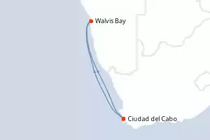Sudáfrica, Namibia, Canarias, Marruecos, España Itinerario: Le Cap , Le Cap , Walvis Bay , Walvis Bay , Santa Cruz de Tenerife , Tánger , Barcelona Comidas incluidas Costa Smeralda 19 días Camarote estándar Le Cap 28/03/2027 desde US$1028 EL PRECIO NO INCLUYE LA PERCEPCIÓN DEL 30% DE AFIP - RG 5463 TARIFA NO REEMBOLSABLE Comidas incluidas Ver las ofertas