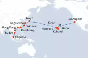 Transpacífico a Asia Oriental Itinerario: Los Angeles , Kahului , Hilo , Kona , Honolulu , Kauai , Tokyo , Kagoshima , Okinawa , Kaoshiung , Hong Kong , Chan May , Phu My , Singapur Comidas incluidas Sapphire princess 35 días Camarote estándar Los Angeles 22/11/2026 desde US$3333 EL PRECIO NO INCLUYE LA PERCEPCIÓN DEL 30% DE AFIP - RG 5463 TARIFA NO REEMBOLSABLE Comidas incluidas Ver las ofertas