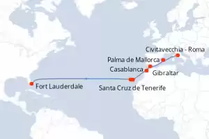 Estados Unidos, España, Marruecos, Italia, Reino Unido Itinerario: Civitavecchia - Roma , Palma de Mallorca , Gibraltar , Casablanca , Santa Cruz de Tenerife , Santa Cruz de la Palma , Fort Lauderdale Comidas incluidas Enchanted Princess 17 días Camarote estándar Civitavecchia - Roma 17/11/2026 desde US$1319 EL PRECIO NO INCLUYE LA PERCEPCIÓN DEL 30% DE AFIP - RG 5463 TARIFA NO REEMBOLSABLE Comidas incluidas Ver las ofertas
