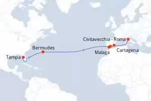 España, Bahamas, Reino Unido, Italia, Estados Unidos Itinerario: Civitavecchia - Roma , Cartagena , Malaga , Gibraltar , Bermudes , Tampa Comidas incluidas Legend 16 días Camarote estándar Civitavecchia - Roma 01/11/2026 desde US$1104 EL PRECIO NO INCLUYE LA PERCEPCIÓN DEL 30% DE AFIP - RG 5463 TARIFA NO REEMBOLSABLE Comidas incluidas Ver las ofertas