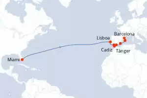 España, Marruecos, Portugal, Estados Unidos Itinerario: Miami , Lisboa , Cadiz , Tánger , Malaga , Cartagena , Palma de Mallorca , Barcelona Comidas incluidas Celebrity Xcel 16 días Camarote estándar Miami 11/04/2027 desde US$1982 EL PRECIO NO INCLUYE LA PERCEPCIÓN DEL 30% DE AFIP - RG 5463 TARIFA NO REEMBOLSABLE Comidas incluidas Ver las ofertas