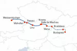 Austria, Alemania, Hungría, Eslovaquia Itinerario: Budapest , Vilshofen , Budapest , Passau , Linz , Bratislava , Grein , Viena , Grein , Melk , Spitz , Krems , Melk , Viena , Dürnstein , Spitz , Bratislava , Viena , Linz , Passau , Budapest , Vilshofen , Vilshofen , Budapest Comidas incluidas AmaMagna 8 días Camarote exterior Budapest 07/03/2027 desde US$4296 EL PRECIO NO INCLUYE LA PERCEPCIÓN DEL 30% DE AFIP - RG 5463 TARIFA NO REEMBOLSABLE Comidas incluidas Otras fechas : 4 abr. 27 27 jun. 27 11-25 jul. 27 Otras fechas Ver las ofertas