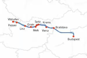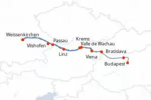 Austria, Alemania, Hungría, Eslovaquia Itinerario: Budapest , Vilshofen , Passau , Budapest , Bratislava , Linz , Grein , Viena , Grein , Melk , Spitz , Viena , Krems , Melk , Dürnstein , Spitz , Linz , Bratislava , Viena , Passau , Budapest , Vilshofen , Budapest , Vilshofen Comidas incluidas AmaRudi 8 días Camarote exterior Budapest 16/05/2027 desde US$6218 EL PRECIO NO INCLUYE LA PERCEPCIÓN DEL 30% DE AFIP - RG 5463 TARIFA NO REEMBOLSABLE Comidas incluidas Otras fechas : 18 abr. 27 13 jun. 27 4-18 jul. 27 Otras fechas Ver las ofertas