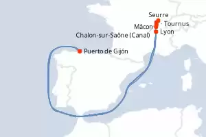 Francia, España Itinerario: Port of Dijon , Lyon , Port of Dijon , Lyon , Mâcon , Seurre , Tournus , Chalon sur saone (Cana)l , Tournus , Chalon sur saone (Cana)l , Tournus , Chalon sur saone (Cana)l , Seurre , Mâcon , Mâcon , Seurre , Lyon , Port of Dijon , Lyon , Port of Dijon Comidas incluidas AmaCello 8 días Camarote exterior Port of Dijon 25/03/2027 desde US$4950 EL PRECIO NO INCLUYE LA PERCEPCIÓN DEL 30% DE AFIP - RG 5463 TARIFA NO REEMBOLSABLE Comidas incluidas Otras fechas : 22 abr. 27 20 mayo 27 Ver las ofertas