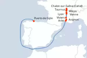 Couleurs provençales au fil du Rhône Itinerario: Lyon , Lyon , Avignon , Avignon , Arles , Arles , Puerto de San Luis , Puerto de San Luis , Martigues , Martigues , Arles , Arles , Viviers , Viviers , La Voulte , La Voulte , Tain-L'Hermitage , Tain-L'Hermitage , Lyon , Lyon Comidas incluidas Van Gogh 6 días Camarote exterior Lyon 25/07/2026 desde US$1957 EL PRECIO NO INCLUYE LA PERCEPCIÓN DEL 30% DE AFIP - RG 5463 TARIFA NO REEMBOLSABLE Comidas incluidas Otras fechas : 17 jun. 26 13-31 ago. 26 18-30 sept. 26 Otras fechas Ver las ofertas