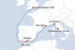 Italia,Francia,España,Reino Unido Itinerario: Civitavecchia - Roma , La Spezia , Marsella , Malaga , Gibraltar , Southampton Comidas incluidas Queen Anne 9 días Camarote estándar Civitavecchia - Roma 12/09/2026 desde US$1405 EL PRECIO NO INCLUYE LA PERCEPCIÓN DEL 30% DE AFIP - RG 5463 TARIFA NO REEMBOLSABLE Comidas incluidas Ver las ofertas