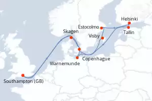 Escandinavia Itinerario: Southampton , Skagen , Copenhague , Warnemunde , Tallin , Helsinki , Estocolmo , Estocolmo , Visby , Southampton Comidas incluidas Sky Princess 15 días Camarote estándar Southampton 25/04/2026 desde US$2379 EL PRECIO NO INCLUYE LA PERCEPCIÓN DEL 30% DE AFIP - RG 5463 TARIFA NO REEMBOLSABLE Comidas incluidas Ver las ofertas