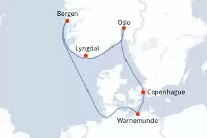 Alemania,Noruega,Dinamarca Itinerario: Warnemunde , Bergen , Lyngdal , Oslo , Copenhague , Warnemunde Comidas incluidas MSC Magnifica 8 días Camarote estándar Warnemunde 06/06/2027 desde US$1199 NAVEGA CON CONFIANZA EL PRECIO NO INCLUYE LA PERCEPCIÓN DEL 30% DE AFIP - RG 5463 TARIFA NO REEMBOLSABLE Comidas incluidas Otros puertos de embarque : Copenhague Ver las ofertas