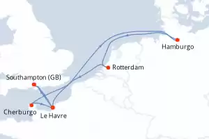 Alemania,Paises Bajos,Francia,Reino Unido Itinerario: Hamburgo , Rotterdam , Cherburgo , Le Havre , Southampton , Hamburgo Comidas incluidas MSC Preziosa 8 días Camarote estándar Hamburgo 06/12/2026 desde US$579 NAVEGA CON CONFIANZA EL PRECIO NO INCLUYE LA PERCEPCIÓN DEL 30% DE AFIP - RG 5463 TARIFA NO REEMBOLSABLE Comidas incluidas Otros puertos de embarque : Southampton Le Havre Rotterdam Otras fechas : 18 oct. 26 29 nov. 26 27 dic. 26 Otras fechas Ver las ofertas
