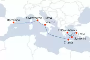 Grecia,Turquía,Italia,España Itinerario: El Pireo Atenas , Santoríni , Efeso , Chania , Salerno , Civitavecchia - Roma , Barcelona Comidas incluidas Rhapsody of the Seas 9 días Camarote estándar El Pireo Atenas 05/11/2027 desde US$1177 EL PRECIO NO INCLUYE LA PERCEPCIÓN DEL 30% DE AFIP - RG 5463 TARIFA NO REEMBOLSABLE Comidas incluidas Ver las ofertas