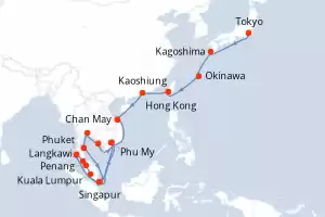 Travesía extraordinaria entre Culturas M Itinerario: Tokyo , Kagoshima , Miyakojima , Kaoshiung , Hong Kong , Chan May , Phu My , Singapur , Phu My , Sihanoukville , Laem Chabang , Laem Chabang , Ko Samui , Langkawi , Phuket , Penang , Kuala Lumpur , Singapur Comidas incluidas Sapphire princess 29 días Camarote estándar Tokyo 23/01/2027 desde US$4113 EL PRECIO NO INCLUYE LA PERCEPCIÓN DEL 30% DE AFIP - RG 5463 TARIFA NO REEMBOLSABLE Comidas incluidas Ver las ofertas