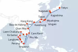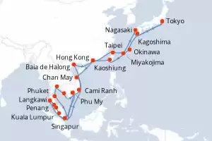 Gran Aventura Asiática Itinerario: Tokyo , Kagoshima , Okinawa , Kaoshiung , Hong Kong , Chan May , Phu My , Singapur , Kuala Lumpur , Penang , Langkawi , Phuket , Phu My , Sihanoukville , Laem Chabang , Laem Chabang , Ko Samui , Singapur , Cami Ranh , Baia de Halong , Baia de Halong , Baia de Halong , Hong Kong , Taipei , Miyakojima , Nagasaki , Tokyo Comidas incluidas Sapphire princess 43 días Camarote estándar Tokyo 12/12/2026 desde US$5247 EL PRECIO NO INCLUYE LA PERCEPCIÓN DEL 30% DE AFIP - RG 5463 TARIFA NO REEMBOLSABLE Comidas incluidas Ver las ofertas