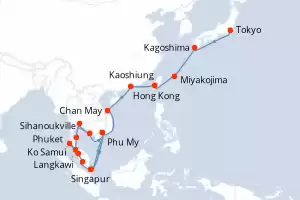Asia Legendaria Itinerario: Tokyo , Kagoshima , Okinawa , Kaoshiung , Hong Kong , Chan May , Phu My , Singapur , Kuala Lumpur , Penang , Langkawi , Phuket , Phu My , Sihanoukville , Laem Chabang , Laem Chabang , Ko Samui , Singapur Comidas incluidas Sapphire princess 29 días Camarote estándar Tokyo 12/12/2026 desde US$4033 EL PRECIO NO INCLUYE LA PERCEPCIÓN DEL 30% DE AFIP - RG 5463 TARIFA NO REEMBOLSABLE Comidas incluidas Ver las ofertas