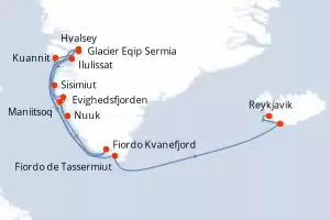 Groenlandia, Islandia Itinerario: Nuuk , Maniitsoq , Kuannit , Glacier Eqip Sermia , Ilulissat , Sisimiut , Evighedsfjorden , Kvanefjord , Hvalsey , Tassermiut fjord , Vestmannaey Island , Reykjavik Comidas incluidas Silver Wind 14 días Suite Nuuk 01/07/2026 desde US$15900 EL PRECIO NO INCLUYE LA PERCEPCIÓN DEL 30% DE AFIP - RG 5463 TARIFA NO REEMBOLSABLE Comidas incluidas Ver las ofertas